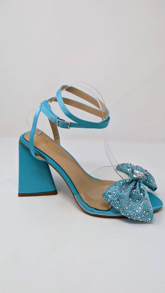 Anya Sparkly Bow Sandals - Tiffany Blue