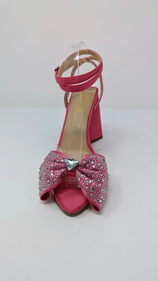 Anya Sparkly Bow Sandals - Fuchsia Pink